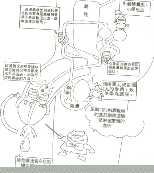 臨床上淋病、尿道炎、膀胱炎或披衣菌的感染者,若用西藥治療產生副作用(如皮膚過敏,胃腸功能差,掉髮倦怠感、性慾減退)或療效不佳(抗藥性),運用中藥及時而適當的治療,效果好。解除「苦不堪言」之隱疾,使黑白人生變彩色。