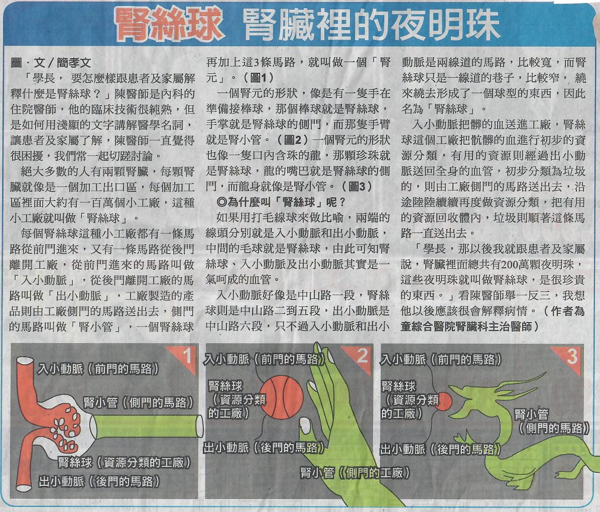 >醫療報導> 腎絲球 腎臟裡的夜明珠