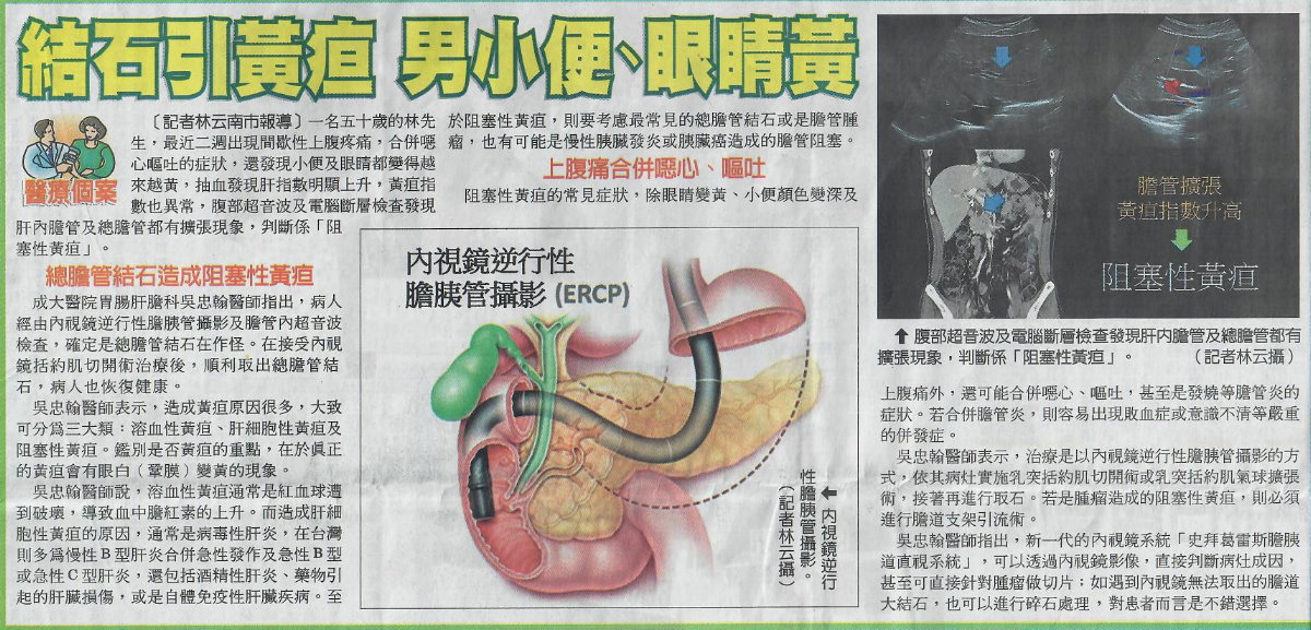 >醫療報導> 結石中黃疸 男小便、眼晴黃